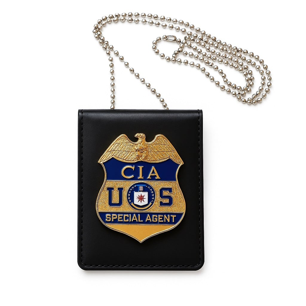 CIAのレプリカバッジと革製IDホルダーです。
